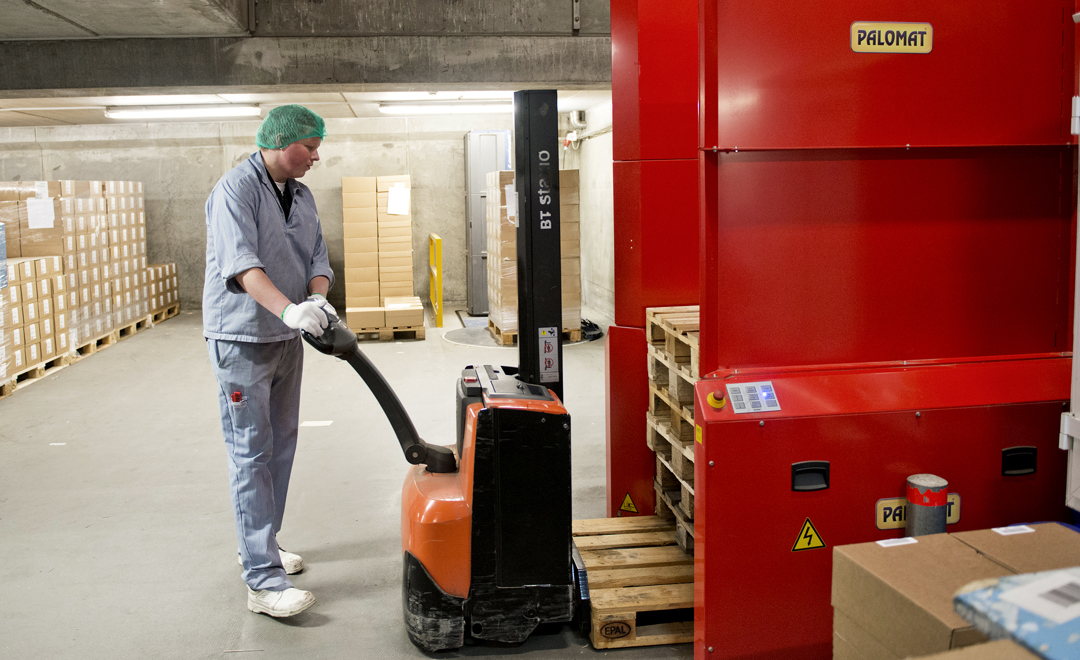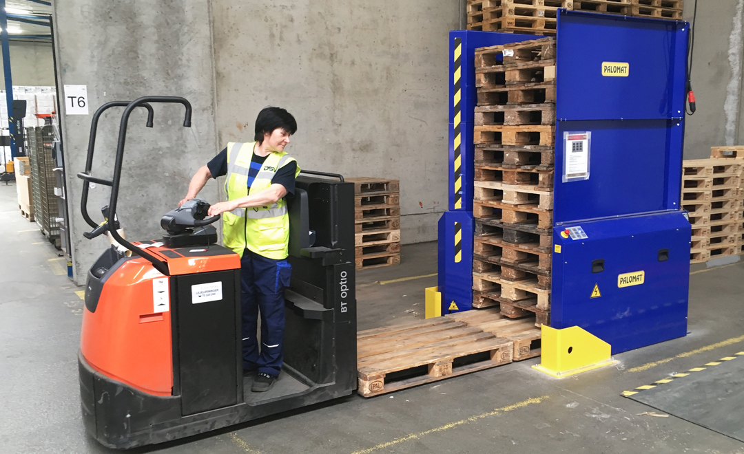 Skån dine medarbejdere for tunge manuelle palleløft, få et bedre arbejdsmiljø og øg effektiviteten med et pallemagasin fra PALOMAT®.