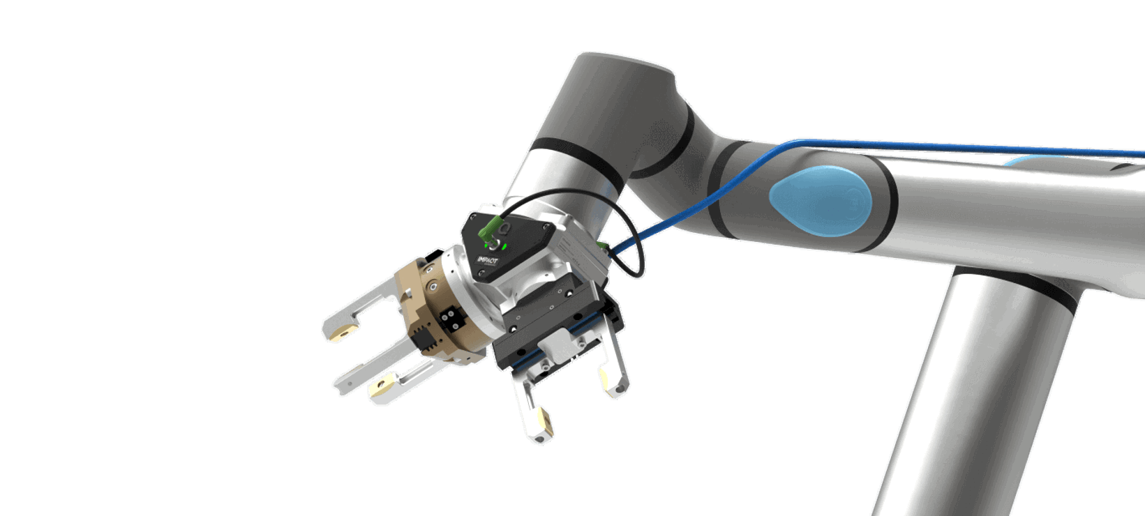 Tilslut blot én pneumatisk slange og betjen to pneumatiske værktøjer samt én luftblæseport. Eliminer behovet for flere pneumatiske slanger og kabler, der løber langs robotkroppen.