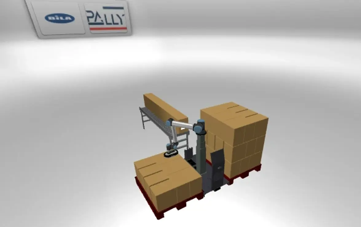 Er en UR-robot det rette valg? Et kraftfuldt simuleringsværktøj genererer en realistisk video-simulation af palleteringsprocessen, så løsningen kan bekræftes på forhånd.